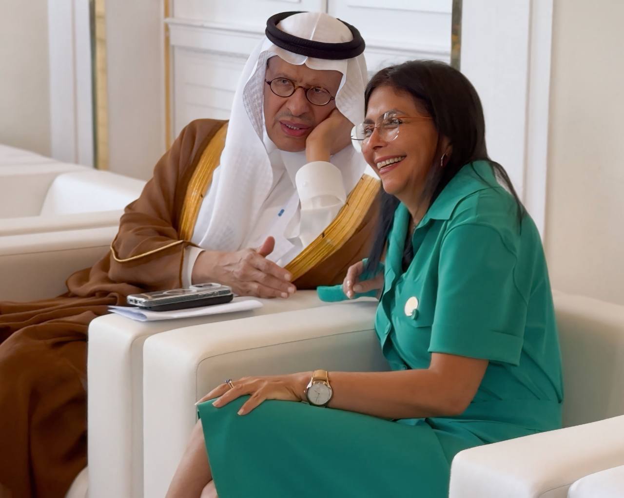 La vicepresidenta ejecutiva de Venezuela, Delcy Rodríguez, y el ministro de Energía de Arabia Saudita, Abdulaziz bin Salman Al Saud, sostuvieron un encuentro clave durante el 9° Seminario Internacional de la OPEP, donde analizaron estrategias para fortalecer la cooperación dentro de la organización y su alianza extendida, la OPEP+.