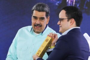 El presidente de la República Bolivariana de Venezuela, Nicolás Maduro, entregó el primer lingote que forma parte de la primera tonelada de oro que ingresará a...
