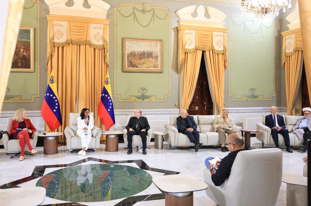 La presidenta Encargada de la República Bolivariana de Venezuela, Delcy Rodríguez, recibió con beneplácito la propuesta de la creación de una mesa de trabajo conjunta con la Vicepresidencia Sectorial Social y las comunidades religiosas que hacen vida en el país, con el objetivo de explorar cómo los espacios religiosos pueden contribuir activamente a sanar las «heridas sociales» de los sectores más vulnerables del pueblo venezolano.