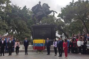 Los diputados del Bloque de la Patria de la Asamblea Nacional (AN) llevaron una ofrenda floral a la estatua ecuestre de El Libertador Simón Bolívar, en la...