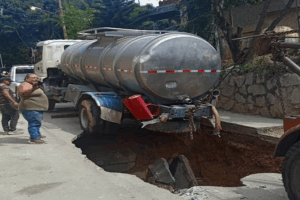 El equipo del Gobierno de Distrito Capital (GDC) rescató un camión cisterna que se encontraba accidentado producto de un hundimiento en la calle Zulia, de la...