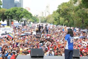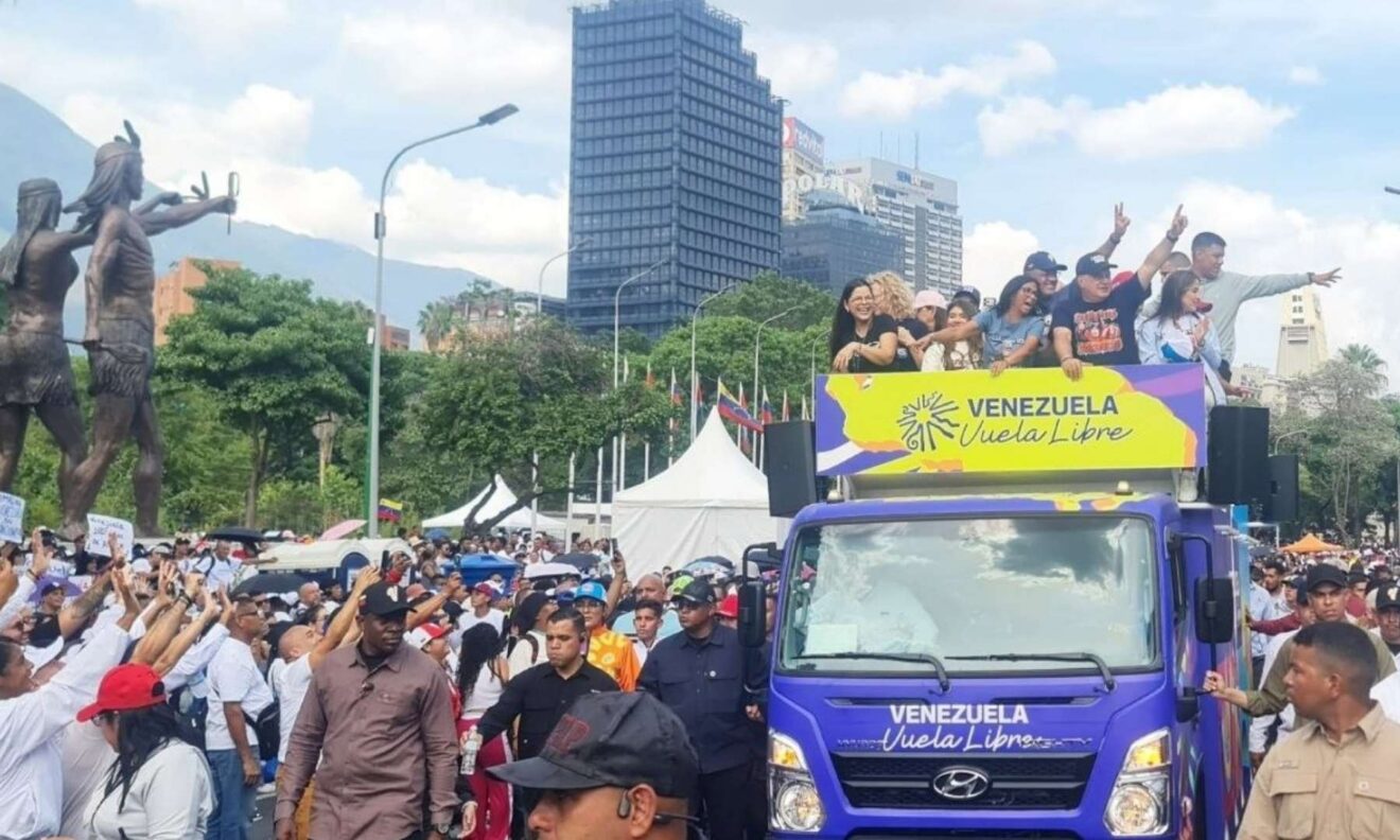 La presidenta encargada de la República Bolivariana de Venezuela, Delcy Rodríguez, encabeza una masiva caravana motorizada y una marcha popular que simbolizan la determinación de un pueblo que exige el fin definitivo de las medidas coercitivas unilaterales y el respeto a la soberanía nacional.