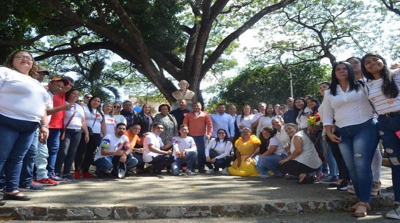 Seguidamente, para continuar con esta celebración, se llevó a cabo un acto cultural en donde autoridades adscritas a la gobernación del estado y docentes de la entidad, rindieron honor y entregaron una ofrenda floral al Padre de la Patria, Simón Bolívar, y al padre de la educación Simón Rodríguez.