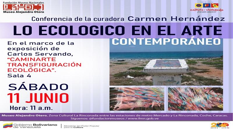 Esta ponencia estará a cargo de la curadora de arte latinoamericano, museóloga, Carmen Hernández, quien tendrá la oportunidad de trasladar a los asistentes a través de su discurso a un despertar sobre la importancia del medio ambiente en nuestros días. Este evento se presenta en la sala 4 de este complejo museístico, donde se exhibe “CaminArte. Transfiguración Ecológica”, de Carlos Servando, fotógrafo protagonista de esta exposición.