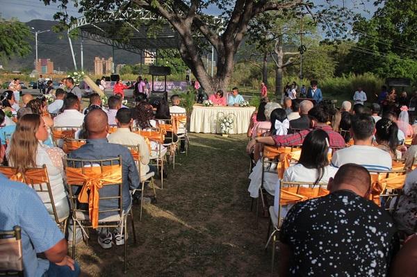 Este miércoles 14 de febrero, 60 parejas naguanagüenses en el estado Carabobo contrajeron nupcias durante una jornada de matrimonio colectivo celebrada en el Parque La Zona; evento organizado por la gestión de la alcaldesa Ana González, en marco del Día del Amor y la Amistad.