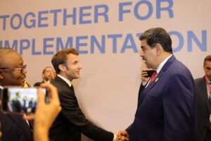 The President of the Bolivarian Republic of Venezuela, Nicolás Maduro, holds a meeting with the President of France, Emmanuel Macron as part of the 27th...