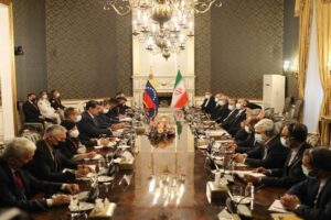 The presidents of the Islamic Republic of Iran and the Bolivarian Republic of Venezuela, Ebrahim Raisi and Nicolás Maduro, respectively, lead the extended high...