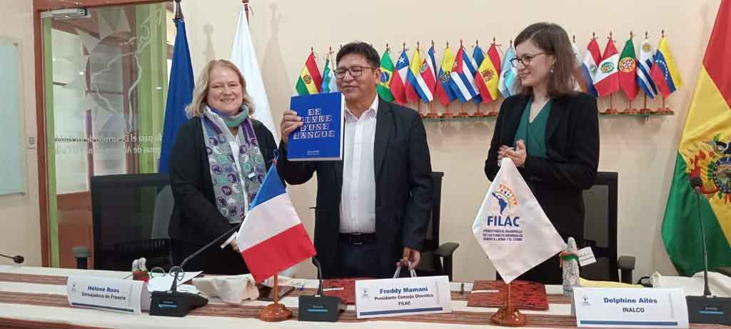 Rubricado el 8 de febrero en la sede del Filac en La Paz, gracias al auspicio del Gobierno francés, el entendimiento incluye la cooperación académica y cultural a través de programas de intercambio en educación e investigación.