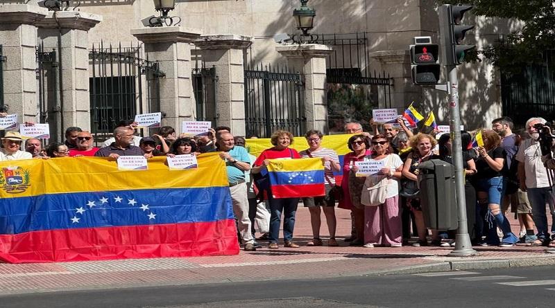 Organizaciones políticas y sociales se concentraron frente al Consulado General de Venezuela en Madrid bajo el lema «Venezuela no es una amenaza»,…