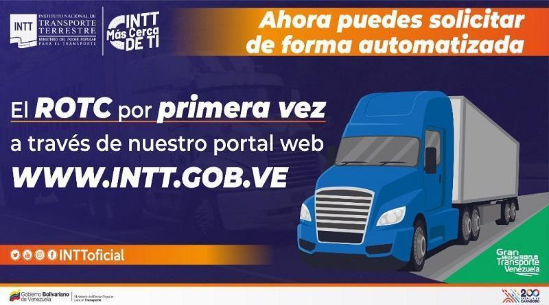 El Instituto Nacional de Transporte Terrestre (INTT) ofrece al sector de Transporte de Carga la posibilidad de tramitar el Registro por primera vez de Operadoras de Transporte de Carga a través de su portal web WWW.INTT.GOB.VE