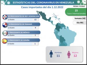 Los 25 casos importados provienen de: Rep. Dominicana (12), Panamá (9), México (1) y España (1); todos con entrada por La Guaira.