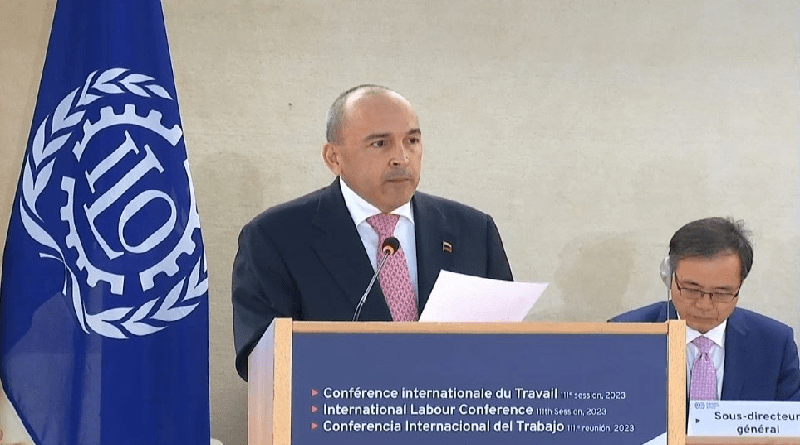 El ministro del Proceso Social del Trabajo, Francisco Torrealba, ante la 111° Conferencia Internacional del Trabajo ratificó los avances de Venezuela en el reimpulso de una economía diversificada, solidaria, incluyente y sostenible, con la promoción del diálogo con todos los sectores sociales y políticos nacionales, a pesar de la imposición de las medidas coercitivas unilaterales contra la nación.