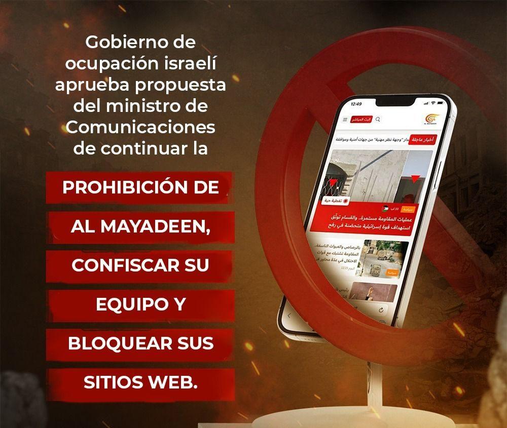 En noviembre de 2023, el Gabinete de Seguridad israelí aprobó la suspensión de Al Mayadeen en la Palestina ocupada, tras una declaración conjunta del ministro de Seguridad de la Ocupación, Yoav Galant, y el ministro de Comunicaciones, Shlomo Krai, que atribuyeron la razón de la prohibición al hecho de que Al Mayadeen perjudica “la seguridad de Israel”.
