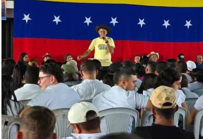 En un ambiente de entusiasmo y unidad, el candidato a la gobernación de Apure por el Gran Polo Patriótico Simón Bolívar, Wilmer Rodríguez, sostuvo un encuentro con dirigentes políticos de base, jóvenes, estudiantes y mujeres de El Nula. Durante el acto, Rodríguez destacó la importancia de la participación activa en el proceso electoral del 25 de mayo y reiteró su compromiso con el desarrollo y bienestar de la comunidad.
