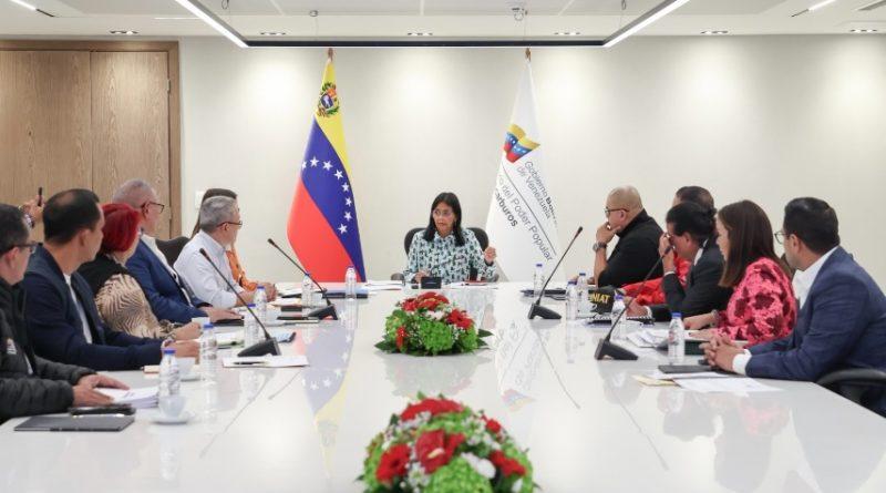 La vicepresidenta Ejecutiva de la República, Delcy Rodríguez, sostuvo una reunión con el Gabinete del Área Económica para evaluar los avances en los 13 Motores Productivos, que han sustentado un crecimiento continuo en Venezuela durante los últimos 16 trimestres, a pesar de las adversidades impuestas por bloqueos y sanciones internacionales.