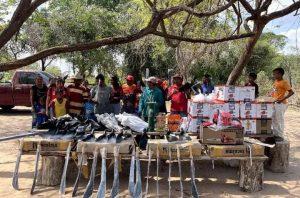Entre los materiales que se entregaron fueron 2000 kilos de semilla de maíz, 7,8 toneladas de alimentos, más de 600 mosquiteros, 280 Kits de telas, medicamentos para 3500 personas, 100 carretillas, Guarañas y motosierras, espejadoras, Machetes y otros materiales adquiridos gracias a la Consulta Popular Nacional 2025 por el cual votaron los Circuitos Comunales de la municipalidad.