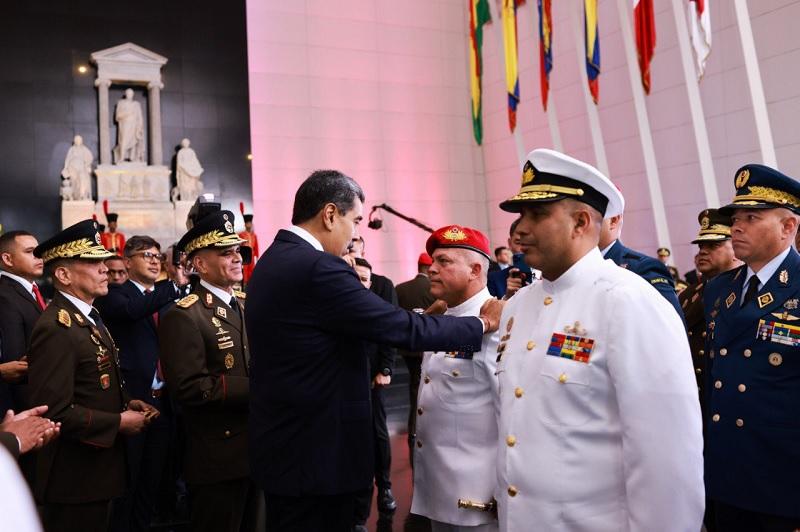 Durante la ceremonia, el Comandante en Jefe, Nicolás Maduro, impuso las presillas a los 223 ascendidos y entregó la réplica de la espada del Libertador Simón Bolívar a los Generales de Brigada y Contralmirantes. Este símbolo representa el más alto honor en la carrera militar, destacando la competitividad, el liderazgo y la lealtad a la nación. Los ascensos otorgados incluyen rangos como General de División, General de Brigada y oficiales que ocuparon el primer lugar en el Orden de Mérito.