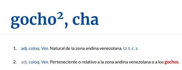 La Real Academia Española (RAE) y el Diccionario de la Lengua Española (DLE) han reconocido oficialmente el término «gocho» como un adjetivo coloquial originario de la región andina venezolana. Esta inclusión valida su uso como gentilicio para referirse a los habitantes de esta zona del país.