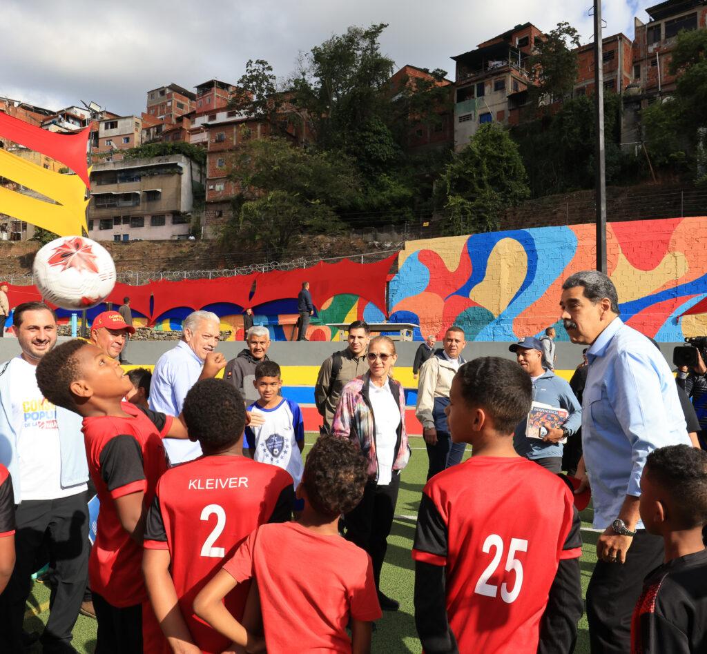 “Estamos en Petare para devolverle al pueblo estos espacios deportivos renovados, que fortalecerán la convivencia y la seguridad”, destacó el mandatario durante el acto, donde también inauguró las piscinas y un campo de fútbol restaurado.