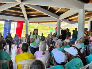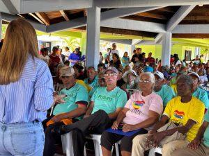 La gobernadora Jhoanna Carrillo Malavé, acompañada por la ministra del Poder Popular para los Abuelos y Abuelas de la Patria, Magally Viña, sostuvo un significativo encuentro con los Círculos de Abuelos y Abuelas de la Patria en la Comuna Agropesquera y Turística San Antonio de Padua, situada en el municipio Mejía del estado Sucre, con el objetivo de consolidar la Gran Misión Abuelos y Abuelas de la Patria.