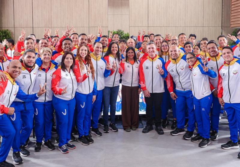 La vicepresidenta resaltó que la participación de los atletas en estos eventos ya es una victoria, pese a las medidas coercitivas unilaterales impuestas por Estados Unidos (EE. UU.). «La Patria garantiza su presencia en competencias internacionales», afirmó, subrayando el compromiso del país con el desarrollo deportivo.