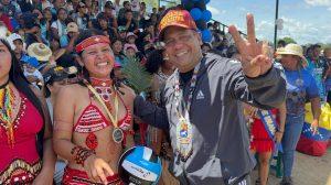El Gobernador de la Guayana Esequiba, Neil Villamizar, dio inicio a la ceremonia inaugural de los juegos sectoriales, acompañado por capitanes de los pueblos indígenas y autoridades del Ministerio Indígena.