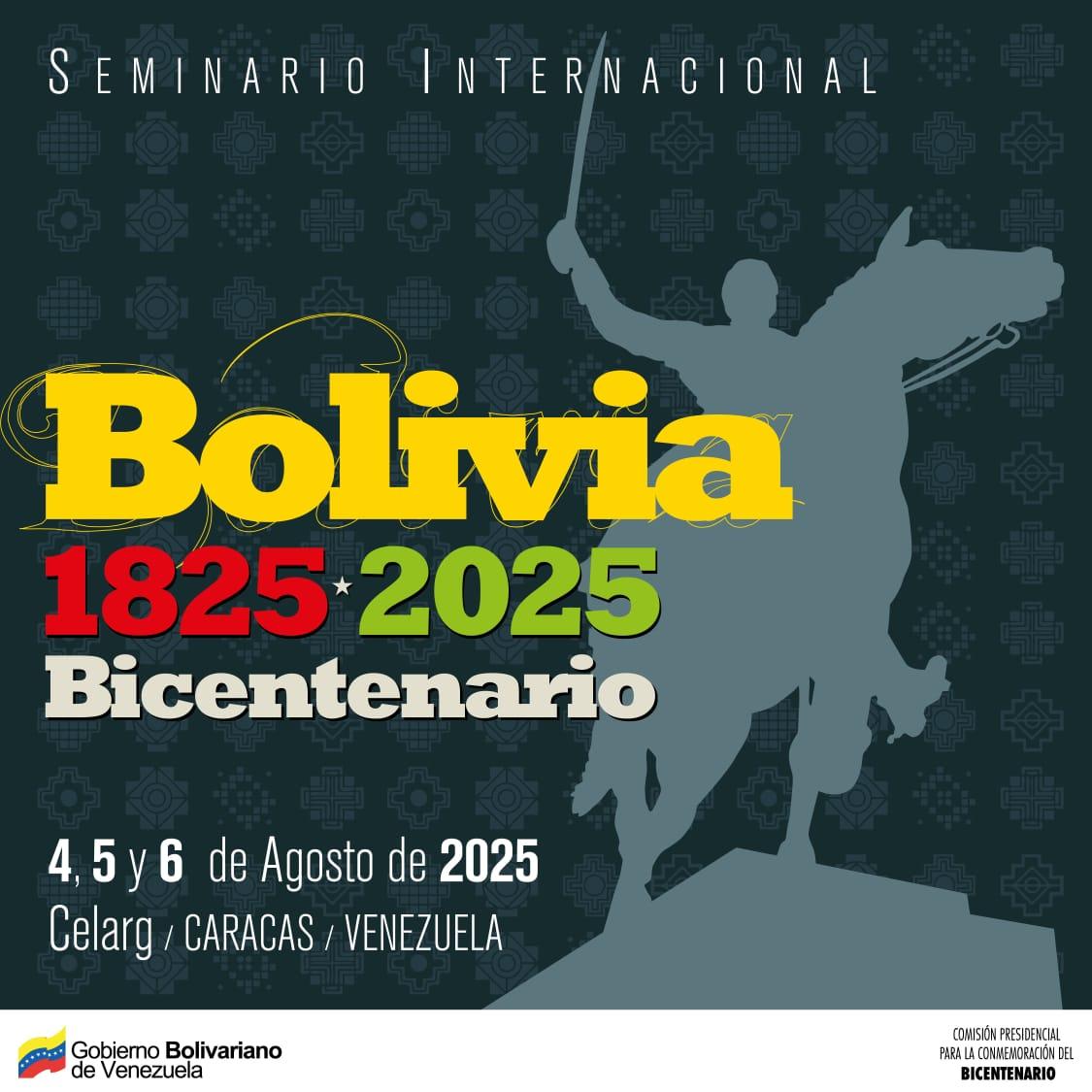 Los días 4 y 5 de agosto tendrá lugar en Caracas el Seminario Internacional Bicentenario de Bolivia 1825-2025, un espacio para debatir e intercambiar ideas sobre este hecho clave en la historia de Nuestramérica y su impacto en el presente.