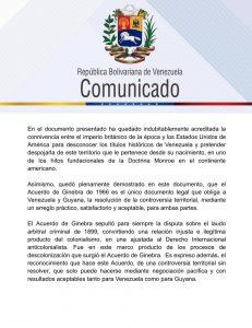 «Guyana pretende cruzar la línea roja de la legalidad internacional al ignorar el marco jurídico vigente», afirmó Rodríguez. Las pruebas presentadas incluyen documentos históricos que revelan cómo el Laudo de 1899 fue parte de la Doctrina Monroe, utilizada para justificar la expansión de potencias extranjeras en la región.