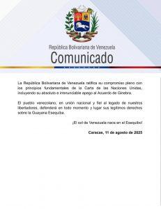 Con esta acción, Venezuela reafirma su compromiso con la paz y la diplomacia, pero también su determinación de defender su integridad territorial. El Gobierno nacional seguirá denunciando lo que califica como una maniobra neocolonial y exigiendo el respeto a su soberanía.