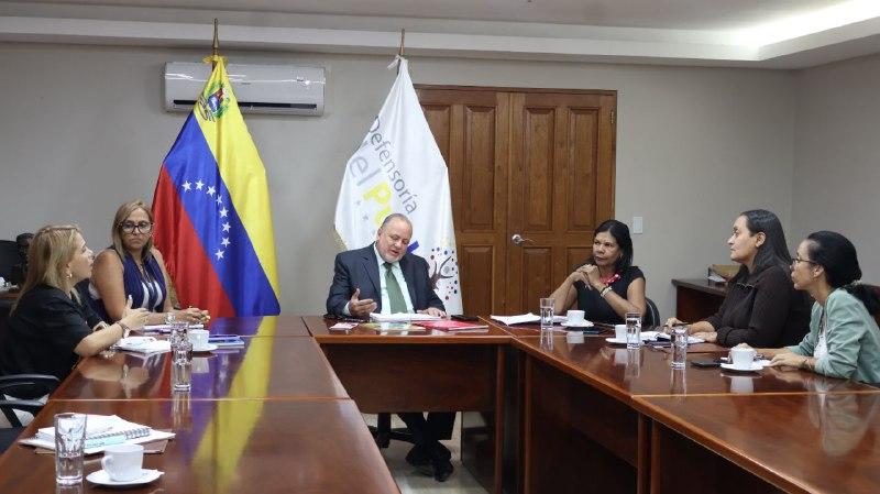 El Defensor del Pueblo, Alfredo Ruiz, en una reunión sostenida con su equipo de trabajo integrado por la Directora general de Atención al Ciudadano, Carola Álvarez y las Defensoras Especiales en materia de mujeres, Trinidad Rodríguez: Niños, niñas y adolescentes, Gabriela de Freitas y para la Protección de Personas Migrantes, Refugiadas y Víctimas de la Trata de Personas, Milet Muñoz, dictó lineamientos para fortalecer la atención de las mujeres víctimas de violencia basada en género y establecer mecanismos de atención y formación para prevenir y denunciar este tipo de delito.
