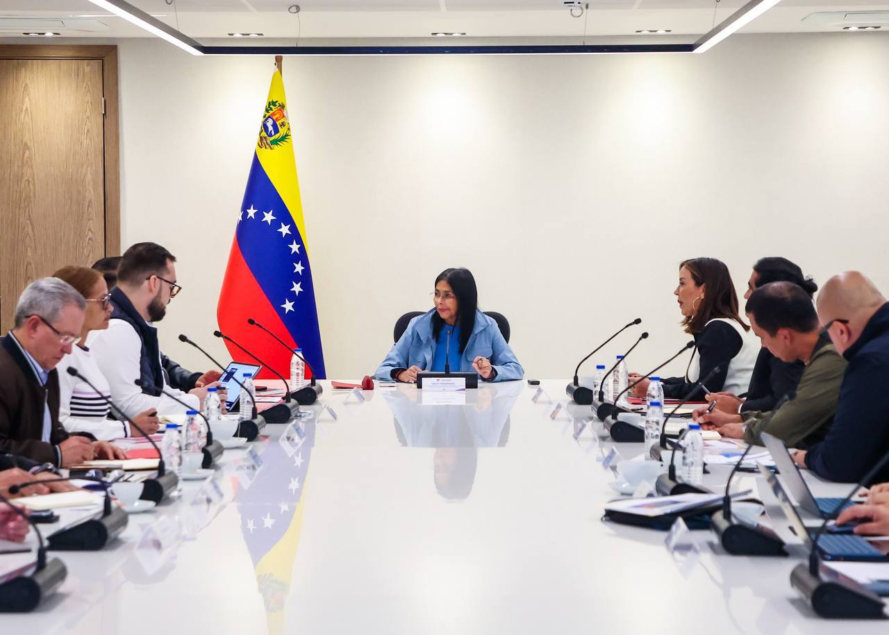 The Executive Vice President of the Republic, Delcy Rodríguez, met with the Foreign Trade Committee (Comex) to evaluate the balance of national policies aimed at accelerating the import substitution mechanism. The purpose of this meeting was to review progress and consolidate strategies within the new economic model, which aims to boost domestic production.
