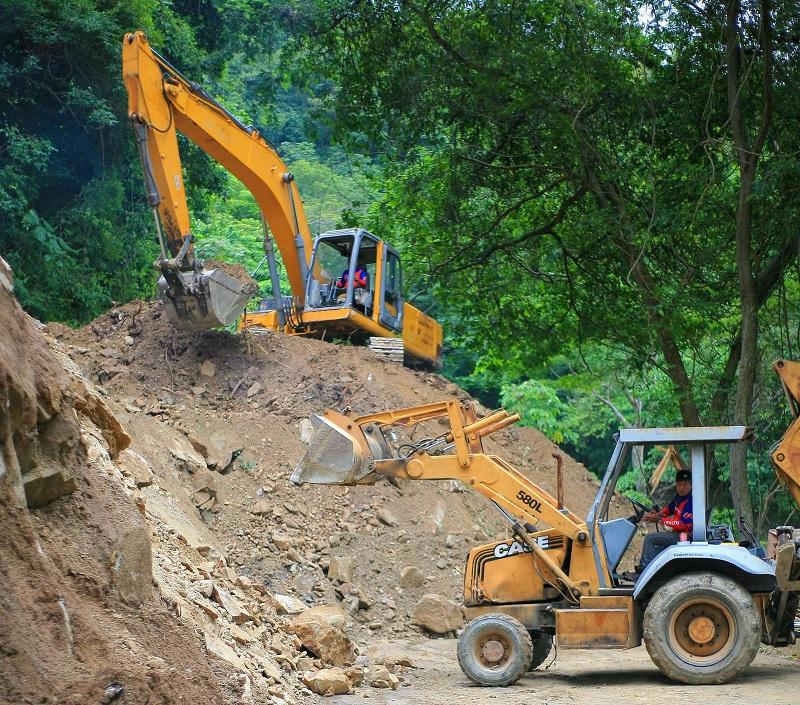 Avanzan en las labores de remoción de escombros en la carretera nacional Las Trincheras, a la altura del sector El Salto, la cual se encuentra obstaculizada debido a las recientes precipitaciones ocurridas luego del paso de las ondas tropicales 33 y 34 por el territorio nacional.