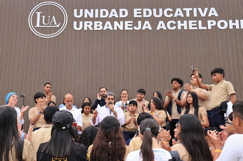 El presidente de la República Bolivariana de Venezuela, Nicolás Maduro, encabezó este lunes la entrega de la rehabilitada Unidad Educativa Luis Manuel Urbaneja Achelpohl, en Los Rosales, Caracas, marcando el inicio del nuevo año escolar 2025-2026 en el país. Lo acompañaron la primera dama, Cilia Flores; la alcaldesa Carmen Meléndez; y otros funcionarios.