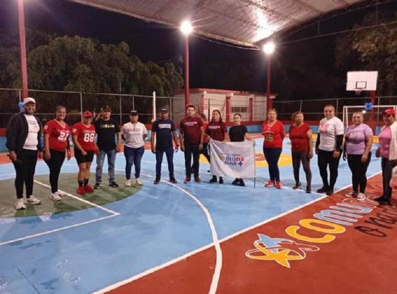 Reyes destacó la recuperación de la Cancha de Usos Múltiples Jajatal en la parroquia Faría y comentó que este espacio deportivo y recreativo beneficia a los jóvenes de las diferentes comunidades, quienes podrán desarrollar sus habilidades y talentos deportivos.