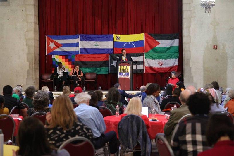 Movimientos sociales estadounidenses e internacionales se concentraron en Nueva York en un acto de solidaridad con la República Bolivariana de Venezuela. La movilización respondió a la amenaza imperial del gobierno de EE.UU., manifestada con la presencia de una presencia naval militar en el mar Caribe.