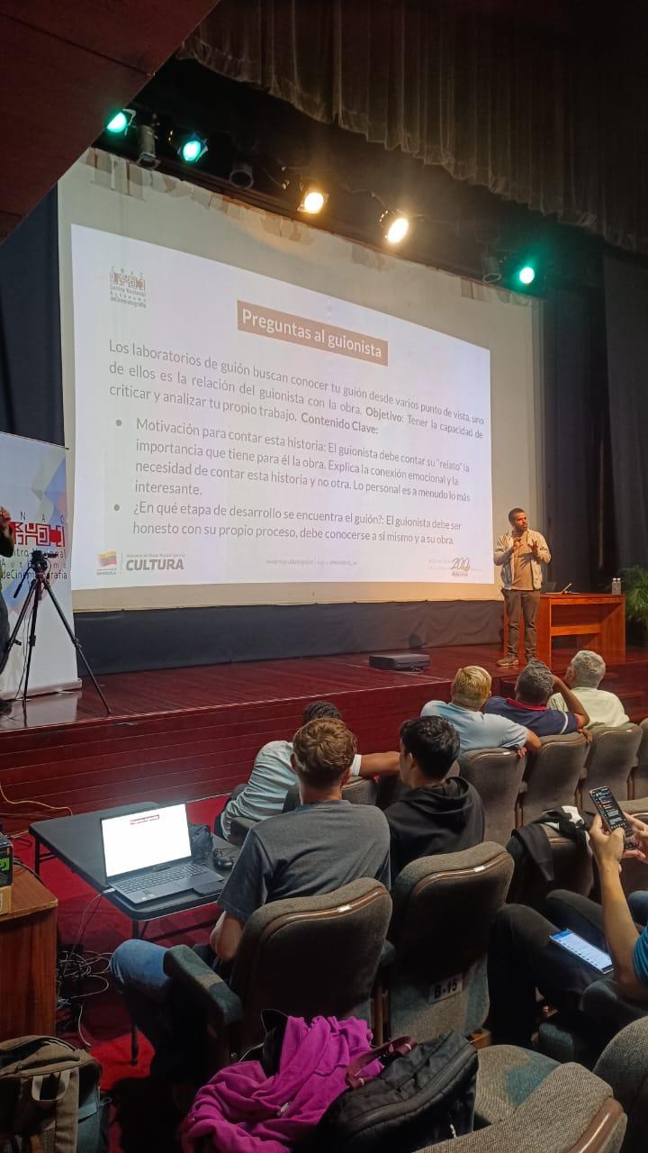 Durante la intensa jornada inicial, Varela y Pino cubrieron los cimientos esenciales de la producción audiovisual y abordaron temas clave como la conceptualización de ideas, la estructura dramática y las técnicas de guión fundamentales. El enfoque principal fue potenciar las habilidades narrativas de los asistentes esenciales para materializar una idea en una propuesta audiovisual bien definida.