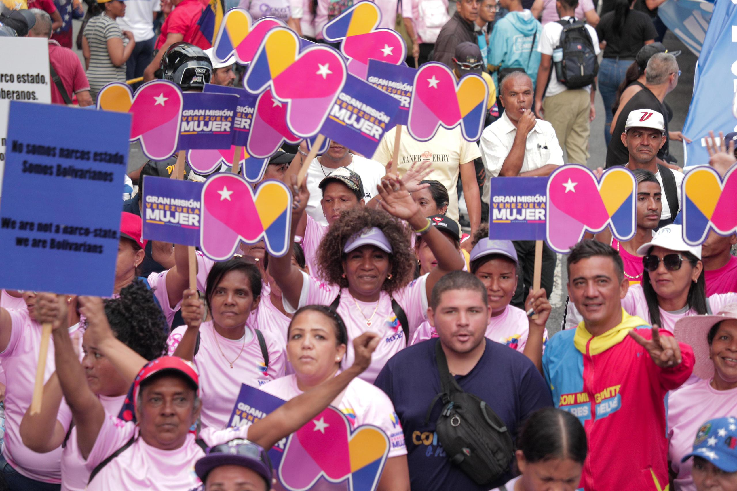 El Ministerio del Poder Popular para la Mujer (MinMujer) y sus entes adscritos se unieron este lunes en Caracas a la gran marcha «¡Ganemos la paz, defendamos la vida! ¡Basta de amenazas criminales!» La movilización fue un respaldo al presidente Nicolás Maduro Moros frente a las amenazas del imperialismo estadounidense que atentan contra la paz y la democracia en Venezuela.