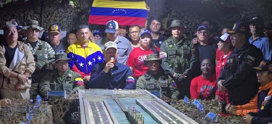 “Militares, los patriotas, hombres y mujeres hemos salido a la defensa de la paz y la soberanía, con organización, disciplina, comando, mando, para que todo esté a la perfección en la defensa a nuestro derecho a existir como nación, a nuestro derecho al libre tránsito, al derecho a la alimentación, a la educación, a la salud, los cuales en momento de agresión y amenaza a la Patria de Bolívar y Chávez, nosotros vamos a garantizar y a defender”, expresó el gobernador Caldera.