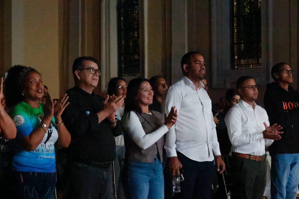 Desde la noche del sábado 18, cientos de creyentes se congregaron en vigilia para la adoración al Santísimo Sacramento, en una jornada marcada por el recogimiento, el canto y la oración.