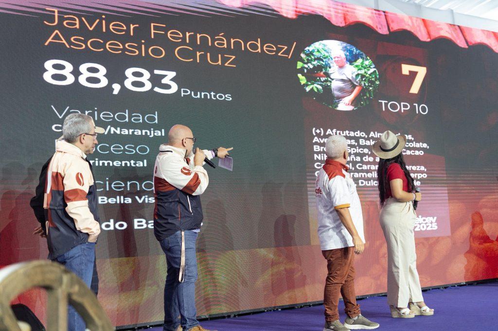 La subasta mantuvo la tensión con resultados igualmente impactantes para el segundo y tercer lugar. El café de Ricardo Lozada (Carabobo) quién obtuvo el segundo lugar, con 91.03 puntos, se vendió a la asombrosa cifra de $3.300 dólares/kg. Mientras que Roney Durán (Trujillo) quién tiene el tercer lugar, con 90.38 puntos, alcanzó un precio final de $1.300 dólares/kg.