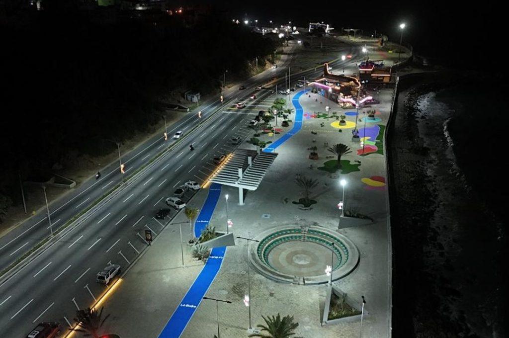 «Se realizó la sustitución de 600 metros lineales de baranda costera, el reemplazo total del sistema de alumbrado público, con 274 luminarias nuevas y más de 60 postes de 12 metros de altura, y la recuperación de la fuente principal de tipo arcoíris», informó el Gobernador del estado La Guaira.