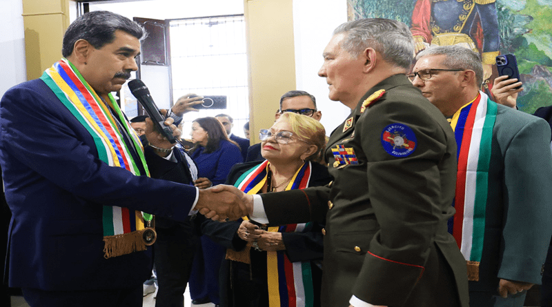La Sociedad Bolivariana de Venezuela distinguió al presidente Nicolás Maduro como «Arquitecto de la Paz» y lo acreditó como su presidente honorario. El reconocimiento se otorgó durante un acto conmemorativo en el Museo Bolivariano, celebrando el 195° aniversario de la siembra del Libertador Simón Bolívar.