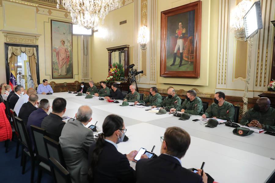 The Constitutional President of the Republic, Nicolás Maduro Moros, holds a meeting this Monday night with the Council of Vice Presidents, the General Staff of the Bolivarian National Armed Forces (FANB) and the High Political Command of the Nation, with the aim of evaluating the latest actions taken by the National Executive to guarantee the political and economic stability of the country.