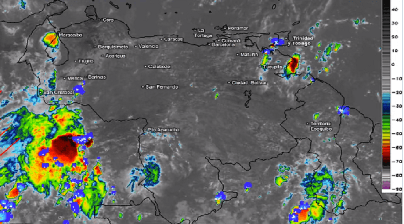 Zambrano señaló que este lunes se registrarán lluvias en áreas de la región Guayana Esequiba, sur de Anzoátegui, los Llanos, en sectores de Miranda, región Central, sur de Yaracuy, localidades de Lara, los Andes, sur de Zulia, este y norte de Falcón. Inameh anunció que en horas de la tarde y noche se prevé un aumento progresivo de la nubosidad con lluvias o chubascos y descargas eléctricas en Amazonas, Bolívar, nuestra Guayana Esequiba, Llanos occidentales, sur de Lara, Andes y Zulia.