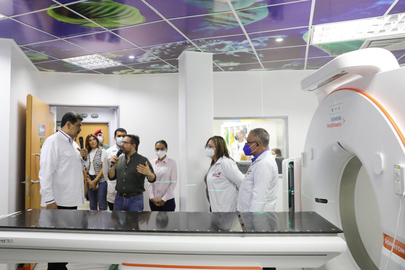 Acompañado por el Gobernador Rafael Lacava, la vicepresidenta sectorial de Ciencia, Tecnología, Educación y Salud y Ministra del Poder Popular de Ciencia y Tecnología, Gabriela Jiménez; por la Ministra del Poder Popular para las Salud, Magaly Gutiérrez Viña, la autoridad única de salud en Carabobo Jonna Acero y demás autoridades de la entidad, el Jefe del Estado venezolano recorrió las renovadas instalaciones, equipadas con la tecnología más avanzada del momento para el diagnóstico y tratamiento de enfermedades crónicas no transmisibles como el cáncer, con el objetivo de brindar atención integral efectiva a los habitantes de la región central del país.